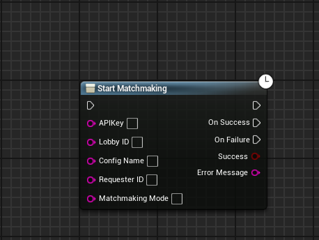 This takes in our defaults, and adds in the Requester ID as we can ONLY start matchmaking when we are the host. This also takes in the matchmaking mode we are looking to go into, we may use this for multiple gamemodes. Once we successfully Start Matchmaking, then we can get Get Game Server Info when we actually have our game server attached.